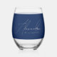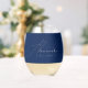 Simple Blue And White Modern Script Stylish Name Stemless Wine Glass