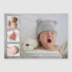 Modern Birth Announcement Magnet featuring a photo collage with a large background picture and three square photos surrounded by a dusty blue border. Baby's name and birth stats are on the bottom of the background photo. This simple yet elegant Birth Announcement Magnet is a great way to share your favorite photos of your newborn baby boy.