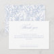 Soft delft blue floral wedding thank you card, designed in a refined blend of chinoiserie and French toile de Jouy style. The soft botanical illustrations is perfect for couples who love vintage, historic, and European-inspired aesthetics. Classic script typography pairs beautifully with the ceramic-blue palette, making this design an effortless nod to the tradition of “something blue.” Fully customizable with your names, and personal message, it’s an exquisite choice for any romantic or sophisticated wedding theme.