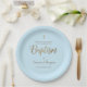 Personalize these plates with your own custom details, adding a personal touch that celebrates this special milestone in your baby's life. The combination of blue and printed gold creates a sophisticated and elegant color palette that complements the significance of the occasion.
