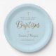 Simple Blue Gold Cross Custom Baby Baptism Paper Plates