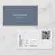 Simple custom corporate black QR Code business card in a modern minimalist style. The template can easily be updated with your QR code and contact information. The front side is blue-gray, back side is white