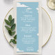 Enhance your event décor with understated charm using this Simple Blue Minimalistic Elegant Cloud Menu. Featuring soft sky-blue hues, a clean cloud motif, and sleek minimalist typography, this design brings a serene, stylish touch to baby showers, gender reveals, or nursery displays. Whether you use it as a menu, welcome sign, or decorative piece, its elegant simplicity ensures it blends seamlessly with any color scheme or theme. Printed on high-quality cardstock with crisp text and a subtle layout, it keeps the focus on your message while maintaining a refined aesthetic. A beautiful option for those who prefer clean, modern designs with a gentle, airy feel.