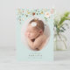 This simple, beautiful photo birth announcement features an elegant oval shaped vertical photo on the front and cascading colorful vintage style botanical wildflowers falling from the top, over the top of the baby's photo. "Introducing" your baby girl in elevated script font, and simple, classic storybook style font typography details for the baby's name and birth statistics including date, weight, and length. The back side offers an opportunity to send a personalized heartfelt family custom message and includes another photo, this time horizontal, for a total of two photos included on this customizable birth announcement template. All done in beautiful soft pastel shades of pink, coral, peach, green, blue, yellow, and red.