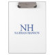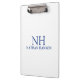 Modern business clipboard featuring a simple and minimal blue and white design with your monogram in a bold font along with your name.