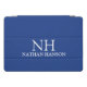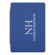 Modern ipad cover featuring a simple and minimal blue design with your monogram in a bold font along with your name.