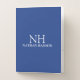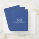 Modern business pocket folder featuring a simple and minimal blue and white design with your monogram in a bold font along with your name on the front. The back has your contact info.