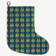 Simple Blue retro Christmas pine tree Pattern Large Christmas Stocking