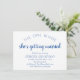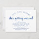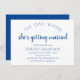 Having your Simple Blue Script One Where She Gets Married Invitation match the theme of your party is a great detail that your guests will appreciate. The thoughtfulness of a consistent party theme is often appreciated and can show your guests that you can host a cohesive event.