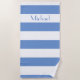 Dive into seaside elegance with our custom-named cornflower blue striped beach towel. This chic, sophisticated design brings a touch of class to your beach days and makes for a perfect addition to any girls' trip, bachelorette party, or BFF getaway. Crafted with high-quality materials and personalized with your chosen name, it's an ideal gift to elevate the beach experience for you and your loved ones. Wrap yourself in style and luxury, whether lounging by the shore or soaking up the sun with friends.