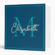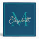 This cute binder features a large simple monogram in teal and cream on dark blue on the front and teal text on the spine. Personalize the front and spine with your choice of name, initial and special text for any occasion.