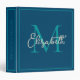 Simple Blue Teal and Cream Monogram 3 Ring Binder