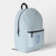 Modern three letter monogram design in cornflower blue on solid pale blue.