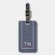 Elegant customizable blue luggage tag with white frame and bold monogram.