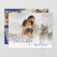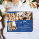 Simple blue and white script wedding with 5 photo grid collage horizontal layout, affordable budget wedding .