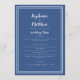 Simple, minimalist and elegant Wedding Menu features a contemporary design with a double frame border in crisp white on a trendy classic blue background. Traditional wording provides timeless yet modern sophistication. Personalize wedding design with your menu details in white lettering and script. The back of the card matches in solid classic blue.