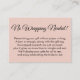 If you're hosting a no-gift-wrap display shower for a bride-to-be, this simple, elegant card could be the choice for you. Using an elegant script font, I first added a header that reads "No Wrapping Needed!" on the front, and "Gifted with Love, From:" for the gift tag side. A template field was set up to offer instructions for guests not wrapping their present; please feel free to change the wording if needed. All fonts and colors can be modified as you see fit.