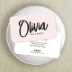 Chic and clean with simple name front with calligraphy style handwritten font on pastel blush pink background.
