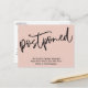 If you prefer plain and simple, this could be the announcement card for you. The front features a graphic header I designed using a modern, casual handwriting font, that reads "Postponed". Lower, there is a cheerful message you can edit, which declares your news: "We're Still Getting Married! Right Now We're Just Not Sure When it Will Happen." Use the template fields to add your personal details and change any of my draft wording to suit your needs and situation. You can also change the background to any color you prefer.