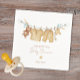 Bring a warm and rustic touch to your baby shower table setting with these simple and sweet boho napkins. Featuring a minimalist watercolor clothesline with baby clothes, a teddy bear, and neutral-toned stars, this gender-neutral design is perfect for woodland, boho, or classic baby shower themes. Personalize with name and date for a custom finish.