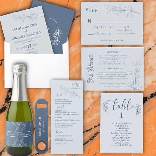 Simple Boho Floral Dusty Blue Wedding SuiteDesigned by Laurentia Petcu