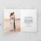 Modern wedding thank you card featuring a simple and minimal layout with "Thank You" in an elegant script typography. Below is your date in a bold handwritten font along with your names over your favorite vertical photo. The inside has a second vertical picture along with your personalized message. The color palette is black and white and may be changed in the design editing tool.