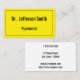 This simple-but-bold business card design features an eye-catching yellow background. It could be used by a medical professional such as a psychiatrist, general surgeon, family doctor or pediatrician. The name, profession and contact details can be personalized.