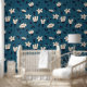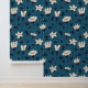 Simple Botanical Abstract Flowers Blue Pattern Wallpaper