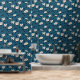 Simple Botanical Abstract Flowers Blue Pattern Wallpaper features an abstract pattern of white flowers on a blue background. Perfect for home decor, bathrooms, wall accents and treatments, office decor and party decor. Created by Evco Studio www.zazzle.com/store/evcostudio