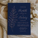 Simple Botanical Line Art Navy Rose Gold Wedding Invitation