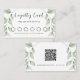 Simple botanical green and white watercolor leaves company loyalty card with QR Code.