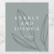 Simple and elegant botanical stem wine bottle labels for beautiful wedding weekend decor and beyond! Featuring hand-drawn leaves as the back ground to the couple's names in a soft sage green.
