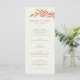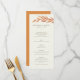 This fall wedding reception menu features a gently arching orange, leafy branch that frames your dinner menu text of elegant and easy to customize typography. Personalize this menu even more by changing the background color from soft ivory to the color of your choice and add your favorite engagement photo to the backer for a truly one of a kind invite.