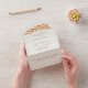 This convenient and budget friendly folded, all in one format wedding invitation features a motif of gently arching orange branches that frame elegant typography. You can personalize this autumn wedding invitation even more by changing the background color from soft ivory to the color of your choice and even change fonts for a truly custom look.