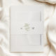 Minimal greenery wedding invitation suite belly band, featuring delicate olive branch and an elegant monogram.