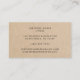 Rustic business card with a simple design featuring your name in a handwritten font and your title below in a serif font over a brown paper background. The backside has your contact information. This design is great for a boutique store, a thrift store, for handmade jewelry and more.