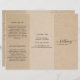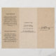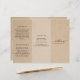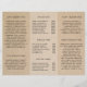 Rustic trifold brochure featuring a faux brown paper background. The front has your business name with swashes in an elegant handwritten script font along with your title or service. The back panel has your contact information and the inner fold panel has two headers and text boxes. The inside has multiple templates for information about your business on the outer panels and a price list in the middle panel. This simple and feminine design is great for a handmade craft business.
