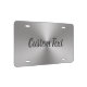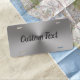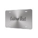 The license plate has the look of brushed metal. You can customize it with your desired text. The dark gray script can be edited or deleted.