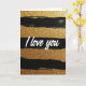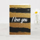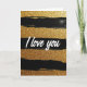 This greeting card features the words “I love you” in bright white cursive lettering across the center. The text sits on a wide, horizontal black paint stroke that looks matte and slightly rough along the edges. Around that dark band, the whole background is filled with gold glitter that catches the light from every angle. The contrast of gold, black, and white makes the message easy to read and hard to miss. It feels romantic and direct, like saying the important thing out loud without overthinking it 🥰. The glitter adds a cozy, celebratory feel, while the black stripe keeps it grounded and sincere ❤️. It’s a simple way to show someone they matter, whether it’s a partner or a close friend. Hope it helps you share Valentine’s Day sentiments in a way that feels honest and warm.