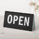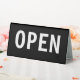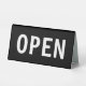 Simple budget friendly Open Sign in bold lettering classic black and white printed as a double side side so your open message is seen no matter which side is viewed. Designed as a lane open sign at a bank, customer service help desk, office, or special event.