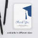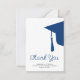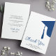 Modern trendy script navy blue and white simple minimalist graduation budget affordable MINI SIZE thank you card template featuring a graduation cap with tassels. ++++++++++ Easy to personalize with your details and custom text!