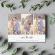 Simple three photo collage design wedding save the date postcards. Share three of your favorite engagement photos with this budget friendly photo collage wedding save the date.