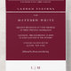 Unique All In One wedding invitation template with rsvp card for a convenient and low cost option for budget savvy couples. The modern yet elegant invitation features your two letter monogram at the top along with your wedding details in white over a burgundy background. A chic and stylish design that is great for a minimalist couple.