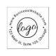 Custom business self inking stamp featuring a minimalist design with your logo along with your business information or other text along the top and bottom. A basic and plain design that still comes across as professional. This simple self inking stamp is great for branding products, bags, boxes, packaging orders and more.