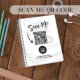 This design features a business custom notebook, with an add your logo, QR code, social media, with a scan me, connect with us, a simple minimalist, modern, corporate, minimal style.