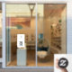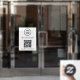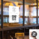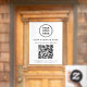 Simple modern white window cling sign for your business. Upload your logo and your QR code for customers to scan for a list of your products, services, prices, hours, etc. Add your business name, phone number and street address or other text.