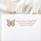 A pretty pink, blue and grey butterfly illustration on a white address label. Select the customize button to change the font style, color and size.
