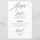 Your guests will adore this simple, modern, and elegant menu template. Featuring sophisticated calligraphy on a pristine white background, this design is perfect for adding a touch of class to your event. Easily personalize with your unique menu details to create a stunning presentation for weddings, formal dinners, or special occasion