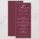 Custom wedding menu card. Simple classic and elegant design in burgundy to coordinate with your wedding colors (please browse my store for alternative colors or click "customize further" and change the background color to suit). The template is ready for you to add the bride and groom names, wedding date and your menu.