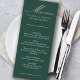 Custom wedding menu card. Simple classic and elegant design emerald green to coordinate with your wedding colors (please browse my store for alternative colors or click "customize further" and change the background color to suit). The template is ready for you to add the bride and groom names, wedding date and your menu.
